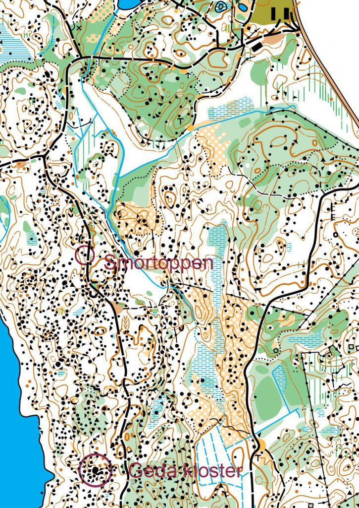 Terrängen runt blocken är ganska lättgången med blåbärsris. Stenen ligger ca 60m väster om den lilla skogsvägen ner mot Lilla Kroksjön. En bit norr om Geda kloster ligger en sten precis intill skogsvägen som har ett stort block på toppen, denna sten kallas smörtoppen.
