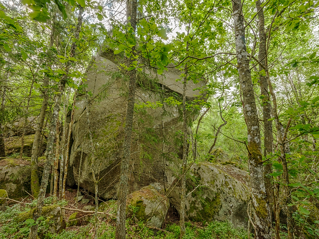 Terrängen runt blocken är ganska lättgången med blåbärsris. Stenen ligger ca 60m väster om den lilla skogsvägen ner mot Lilla Kroksjön. En bit norr om Geda kloster ligger en sten precis intill skogsvägen som har ett stort block på toppen, denna sten kallas smörtoppen.