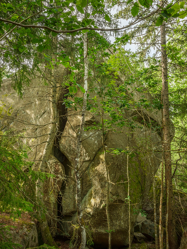 Skogsvägarna i området är inte öppna för biltrafik. Smidigast är att parkera vid Harasjömåla fiskecamp och sedan följa skogsvägarna ner till stenarna. Se även orienteringskarta nedan.